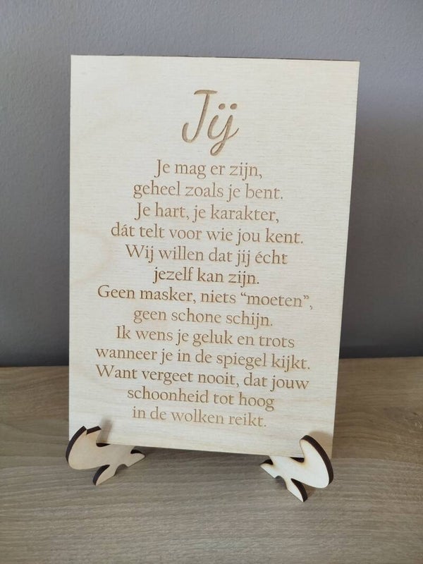 Wil je het graag helemaal persoonlijk maken? Dan schrijf ik graag een tekst op maat. Ik contacteer je om dit verder af te stemmen.