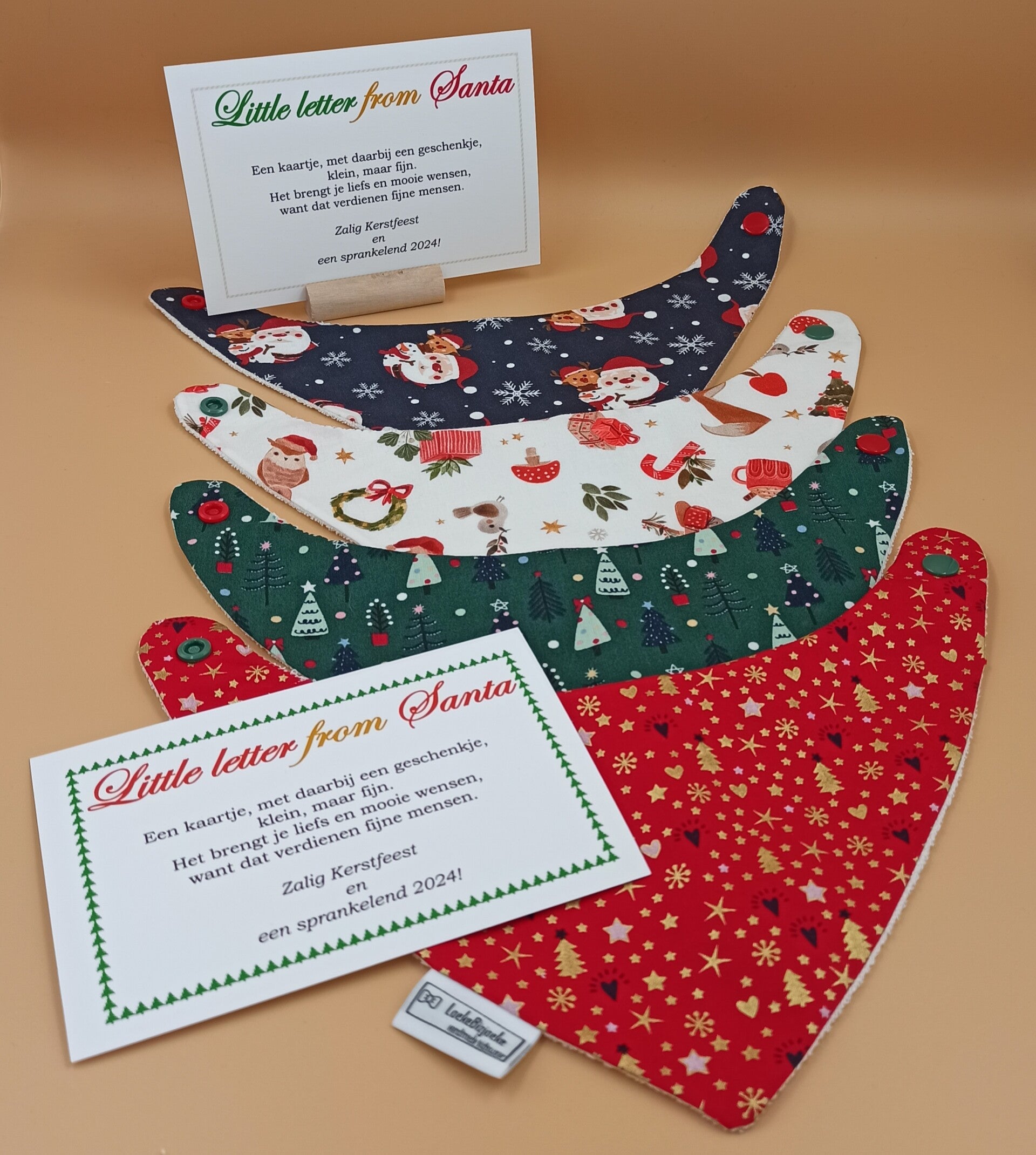 - een slabbetje beschikbaar in verschillende leuke kerststofjes van Ateljee LoekeBizjoeke, want we denken ook aan de allerkleinsten