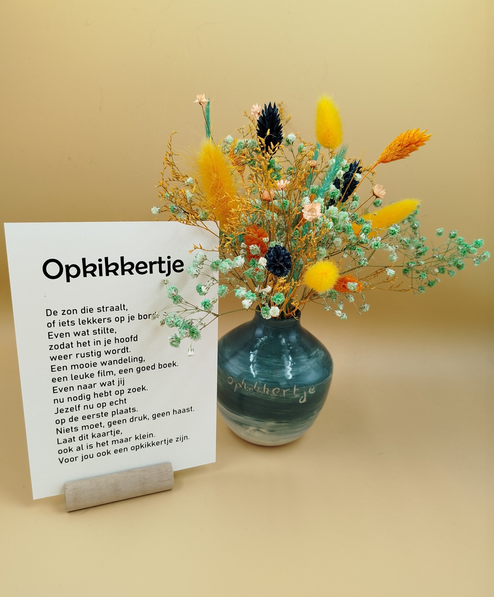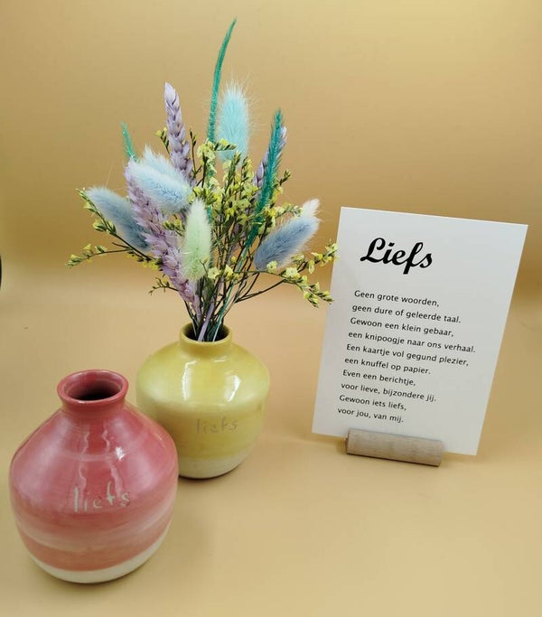 Deze setjes met wensvaasje + wenskaart zijn de perfecte combinatie van haar talent en mijn schrijfsels.