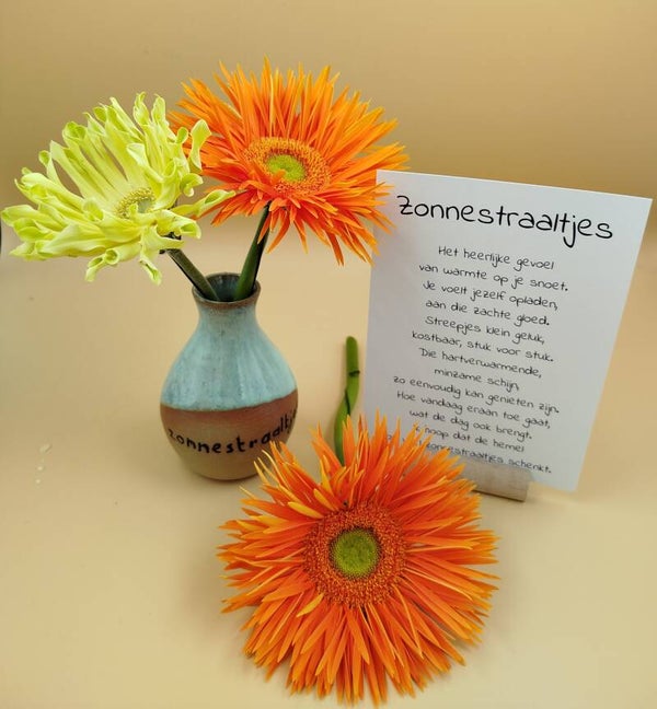 De kleur van het vaasje mag je kiezen (mag je opgeven bij het veld opmerkingen).